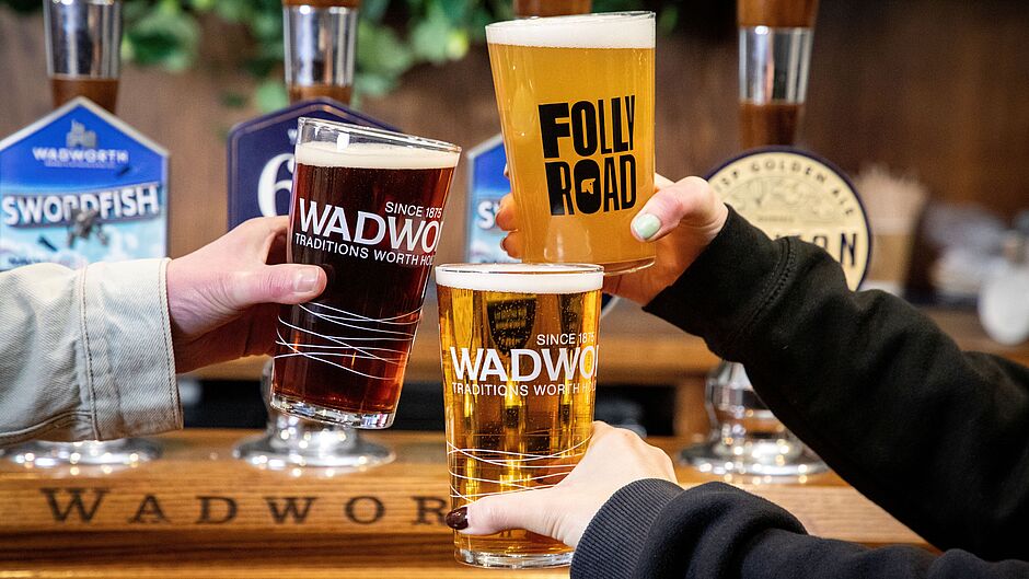We proudly serve award-winning Wadworth traditional ales and Folly Road craft beers, alongside a rotating selection of seasonal brews from the state-of-the-art Folly Road Brewhouse.